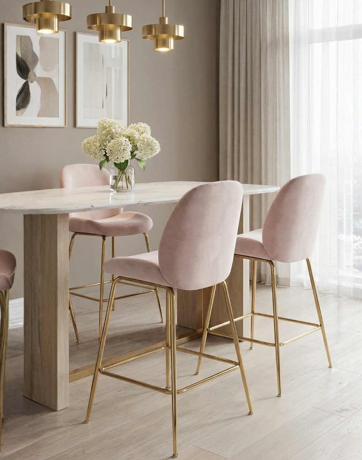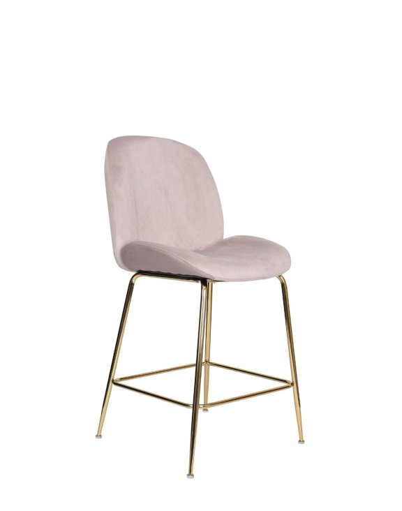 Elegancki hoker Dori Gold marki Avida Design w kolorze beżowym z zaoblonym oparciem i siedziskiem to doskonały element uzupełniający do kuchni, jadalni z wysoką ladą lub baru.