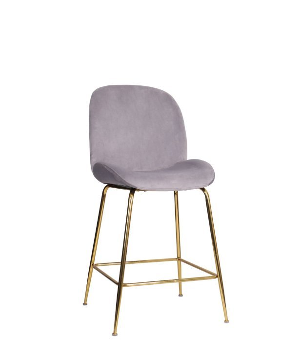 Elegancki hoker Dori Gold marki Avida Design w kolorze szarym z zaoblonym oparciem i siedziskiem to doskonały element uzupełniający do kuchni, jadalni z wysoką ladą lub baru.