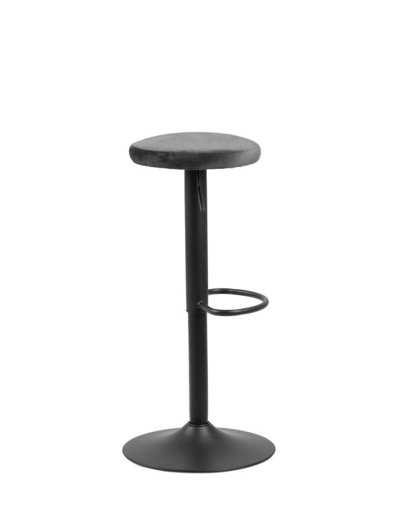 Stołek barowy Finch marki Actona to designerskie i funkcjonalne siedzisko, które wyróżnia się stylem industrialnym w kolorze szarym tapicerowanym tkaniną welwetową Vic .