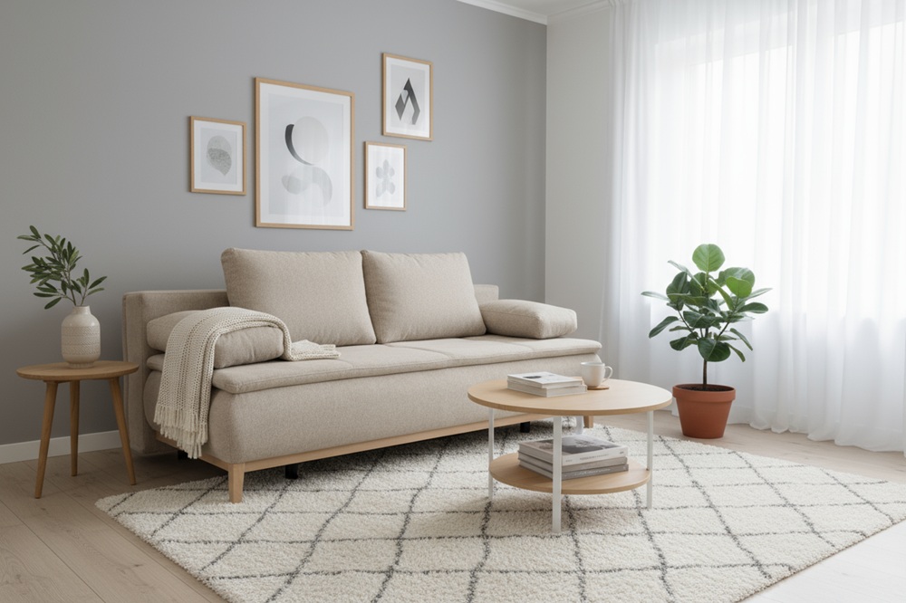 Kanapa Molly to kompaktowa sofa rozkładana o szerokości 202 cm, zaprojektowana w stylu skandynawskim, który łączy prostotę, naturalność i funkcjonalność.