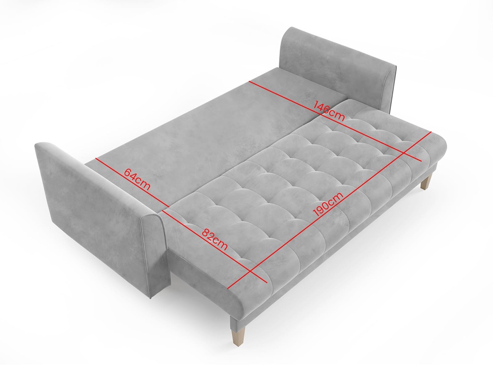Model doskonale sprawdzi się zarówno jako wygodna kanapa do codziennego wypoczynku, jak i praktyczne łóżko dla domowników lub gości.