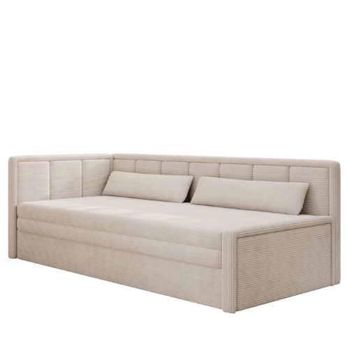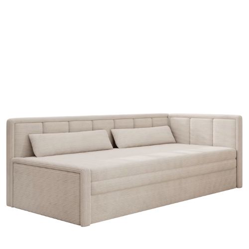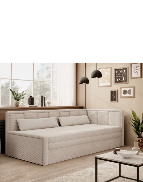 Model Fulgeo wyposażony jest także w pojemny schowek na pościel, który pomaga utrzymać porządek w mieszkaniu – idealnie sprawdzi się w kawalerkach czy pokojach młodzieżowych.