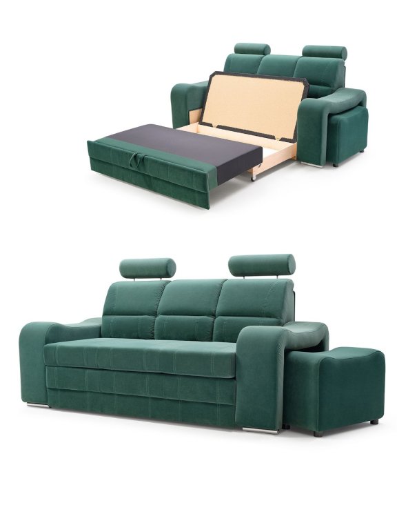 Automat wspomagający rozkładanie sprawia, że kanapa z zagłówkiem zmienia się w łóżko szybko i bez wysiłku.
