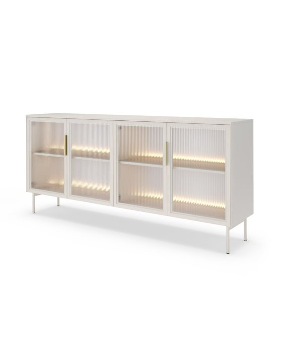 Komoda kaszmirowa Lumi B ze szklanymi frontami i oświetleniem LED