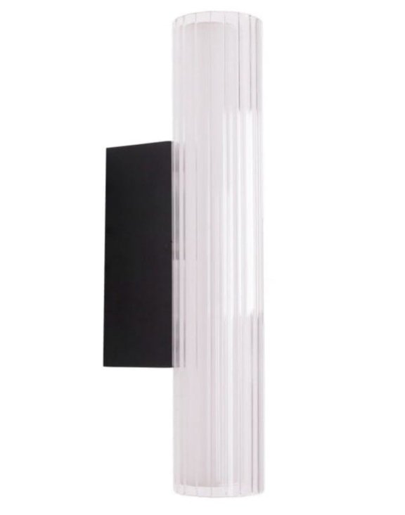 Kinkiet Fayette wyróżnia się eleganckim, pionowym kloszem wykonanym z przeźroczystego szkła o dekoracyjnym, ryflowanym wykończeniu, który subtelnie rozprasza światło.