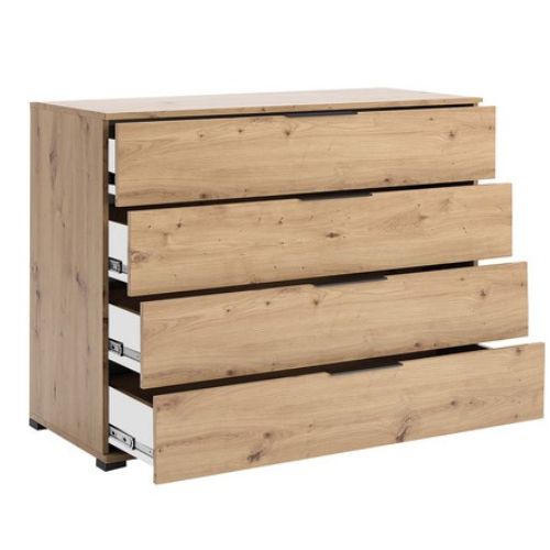 Komoda z szufladami w kolorze dąb artisan, łączy w sobie ciepło naturalnego drewna z nowoczesną prostą formą. Jej design sprawia, że doskonale odnajdzie się zarówno w salonie, sypialni jak i pokoju młodzieżowym, dodając wnętrzu przytulności i elegancji.