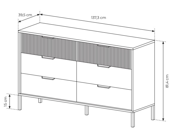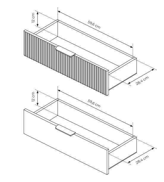 Zestaw stolików nocnych Baltic D w kolorze dąb baltic i czarnym. Nowoczesny design, ryflowane fronty MDF, metalowe uchwyty i ciche prowadnice z domykiem.