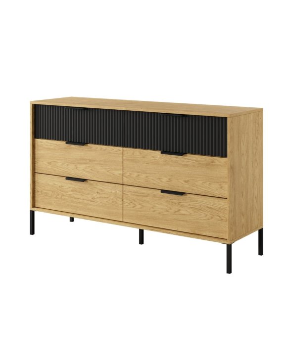 Nowoczesny zestaw Baltic łączy ciepły odcień dębu z czarnymi akcentami. Styl, wygoda i polska jakość w jednym eleganckim komplecie do sypialni.