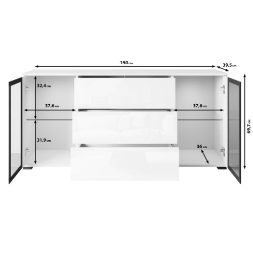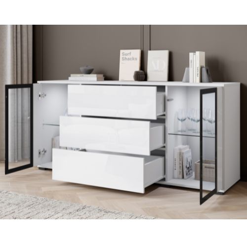 | Komoda biała z szufladami i witrynami Caro SB150 (CARS15020) | 993 zł |