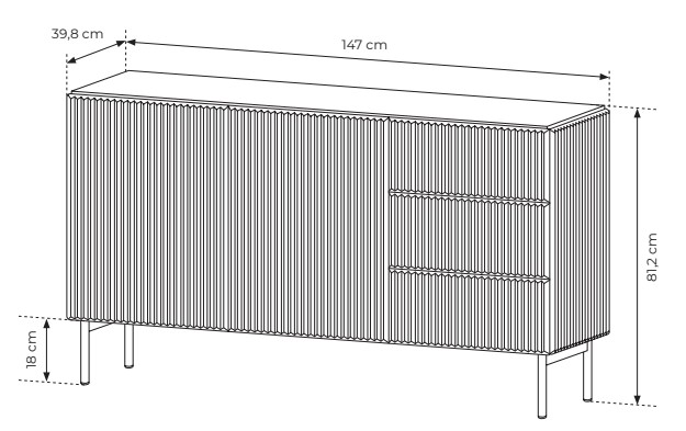 Elegancka komoda Muti C w głębokiej czerni to nowoczesne połączenie stylu i funkcjonalności. Trzy szuflady oraz dwie pojemne szafki oferują wiele miejsca na przechowywanie, a ryflowane fronty dodają wyjątkowego charakteru. Postaw na ponadczasową elegancję – zamów komodę Muti C już dziś z darmową dostawą!