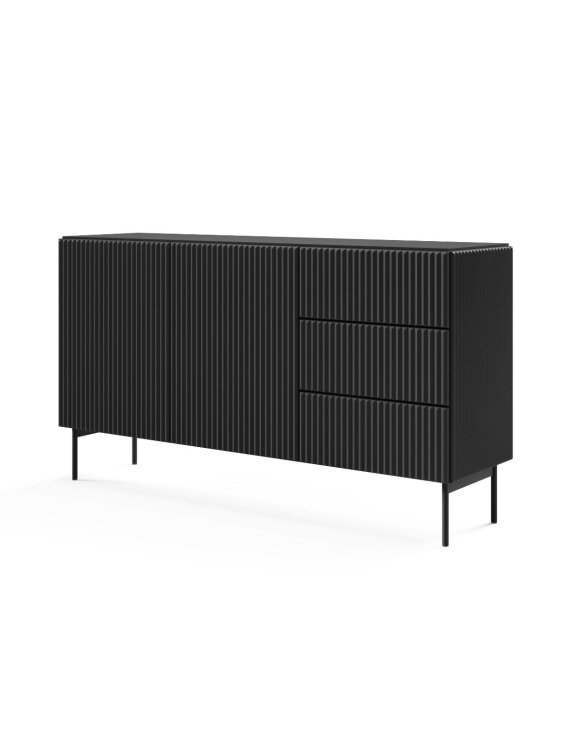 Czarna komoda Muti A to elegancki i funkcjonalny mebel z ryflowanymi frontami i systemem push-to-open. Idealna do salonu, jadalni i sypialni. Zamów już dziś z darmową dostawą!