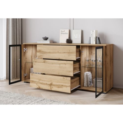 | Komoda dąb wotan z szufladami i witrynami Caro SB150 (CARS150W) | 993 zł |