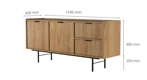 Optymalne wymiary - szerokość 150 cm, wysokość 68 cm i głębokość 40 cm czynią komodę idealnym rozwiązaniem nawet do mniejszych pomieszczeń, bez utraty pojemności.