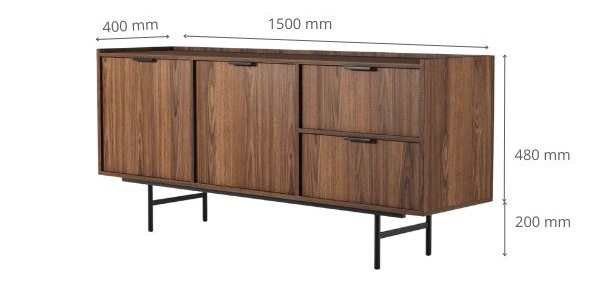 Optymalne wymiary - szerokość 150 cm, wysokość 68 cm i głębokość 40 cm czynią komodę idealnym rozwiązaniem nawet do mniejszych pomieszczeń, bez utraty pojemności.