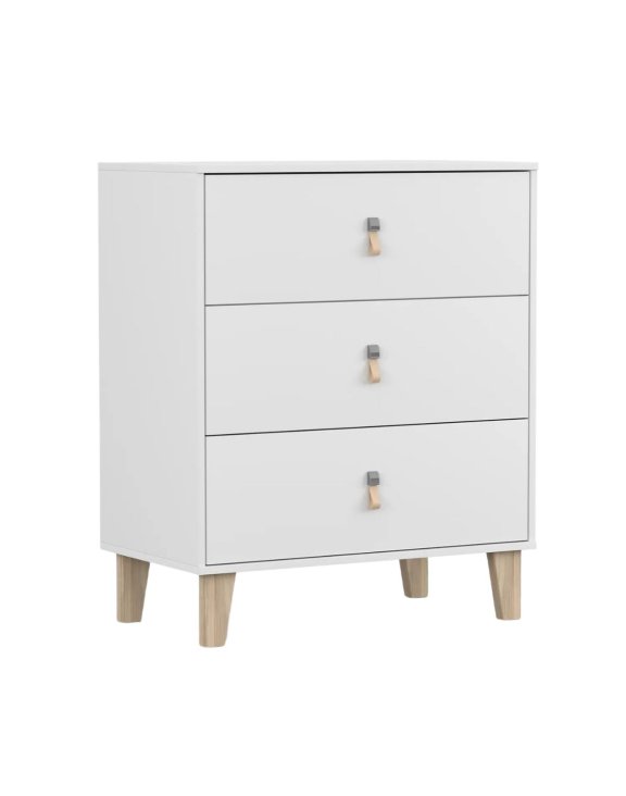 Wyposażona w trzy szerokie szuflady, komoda zapewnia dużo miejsca do przechowywania – od ubrań po książki i akcesoria.