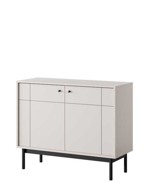 Komoda dwudrzwiowa Japandi (K104) w kolorze kaszmiru marki Piaski to stylowy i funkcjonalny mebel, doskonale wpisujący się w estetykę japandi.
