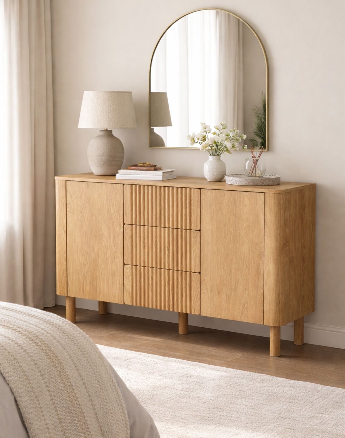 Naturalna kolorystyka inspirowana drewnem wprowadza do wnętrza ciepło i elegancję, a minimalistyczna forma sprawia, że mebel doskonale komponuje się zarówno z nowoczesnymi, jak i klasycznymi aranżacjami.