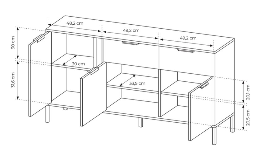 Komoda Lars B 153 cm antracyt z szafkami i szufladami