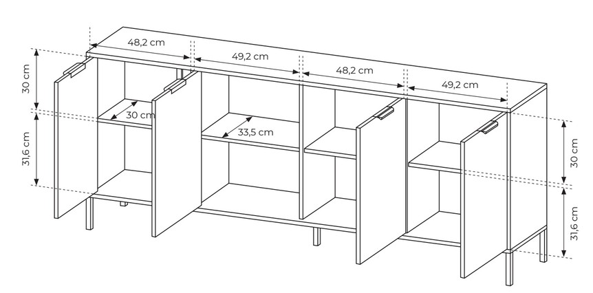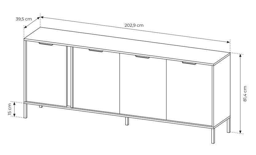 Szeroka komoda antracytowa Lars E z szafkami 203 cm
