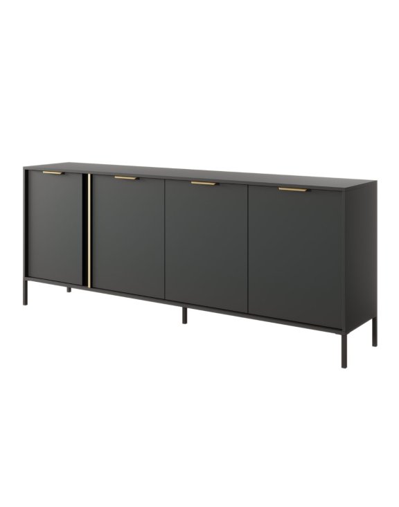 Komoda Lars B to stylowe połączenie antracytu i złotych detali. Oferuje dużo miejsca do przechowywania dzięki trzem szafkom i dwóm szufladom. Idealna do nowoczesnego salonu lub jadalni.