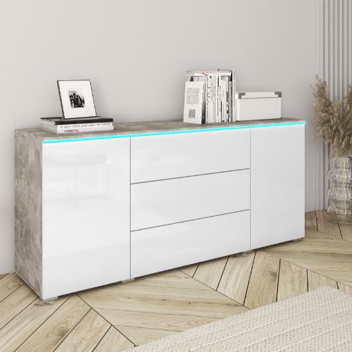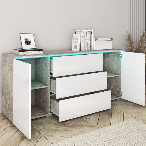 | Komoda LED z szufladami i szafkami Vera 150 cm beton/biały połysk (VRB150AW) | 1019 zł |