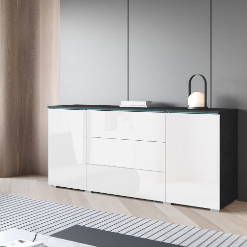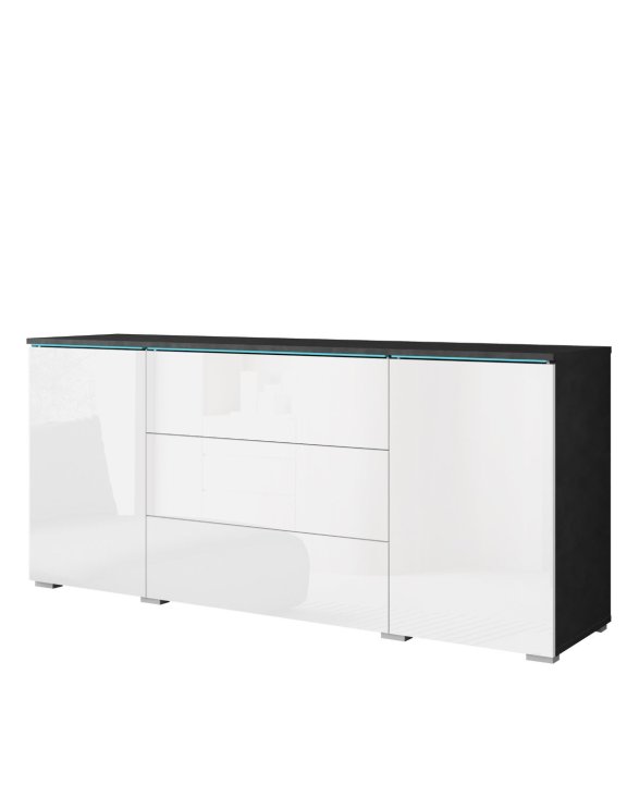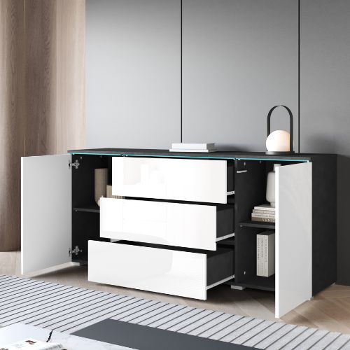 Komoda led z szufladami i szafkami to elegancki i nowoczesny mebel, który łączy w sobie funkcjonalność z wyjątkową estetyką. Komoda wykonana w kolorze matera/biały połysk stanowi doskonały wybór do wnętrz urządzonych w stylu loftowym, nowoczesnym, a także skandynawskim.