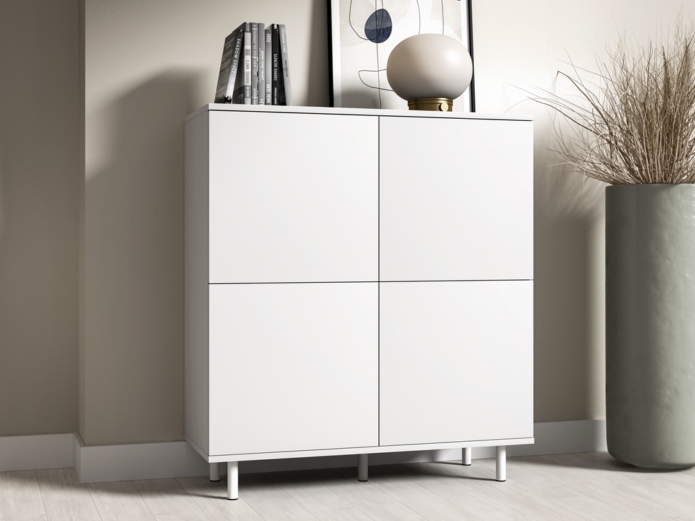 | Biała komoda z szafkami Logan 4D na wysokich nóżkach | 915 zł |