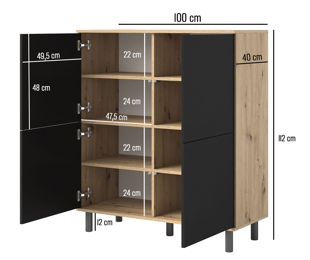 | Wysoka czarna komoda Logan 4D na nóżkach 12 cm | 915 zł |