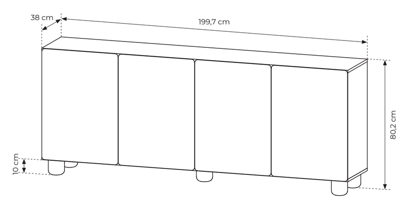 Szeroka komoda do salonu Lomo B 200 cm 4D dąb vicenza
