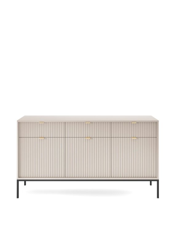Komoda Nova w kolorze kaszmirowym z szufladami (KSZ154) marki Piaski to elegancki i funkcjonalny mebel, który doskonale sprawdzi się w salonie bądź sypialni.