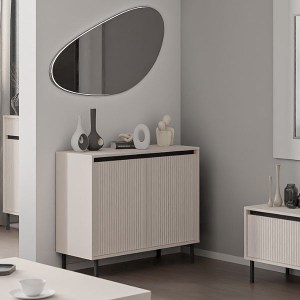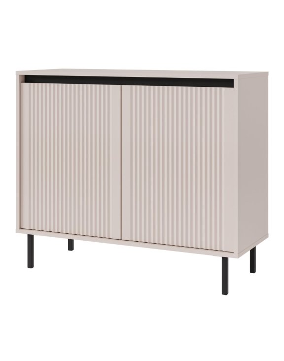 Komoda Osaka zachwyca subtelną formą urozmaiconą pionowymi frezami na frontach, które dodają jej wyrafinowanego charakteru.