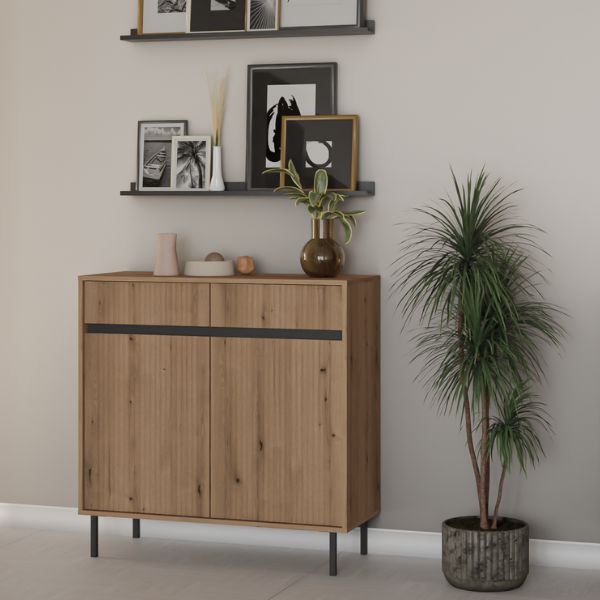 Komoda Osaka 2D2S to doskonały wybór dla osób ceniących minimalistyczny design, funkcjonalność i naturalne piękno drewna.