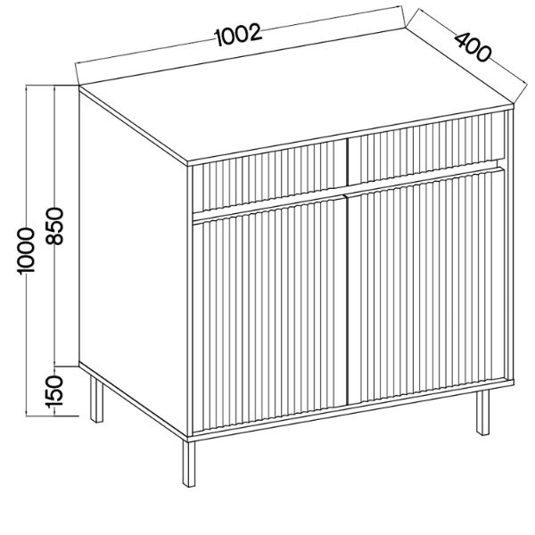 Dzięki dwóm pojemnym szufladom oraz czterem przestronnym półkom ukrytym za drzwiami, mebel oferuje idealne rozwiązanie do przechowywania.