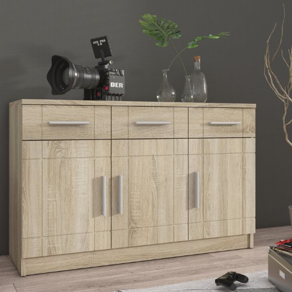 Wzbogać swój salon, sypialnię lub przedpokój o ponadczasową elegancję dzięki komodzie PARIS 3F3S w kolorze Dąb Sonoma.