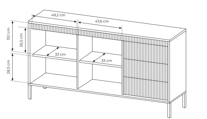 Wysoka komoda Senso z ryflowanymi frontami i systemem push-to-open to idealne połączenie nowoczesnego stylu i funkcjonalności – zamów do swojego wnętrza już teraz!