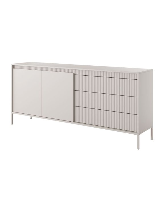 Wysoka komoda Senso z ryflowanymi frontami i systemem push-to-open to idealne połączenie nowoczesnego stylu i funkcjonalności – zamów do swojego wnętrza już teraz!