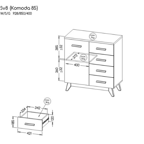 | Komoda skandynawska z szufladami i szafką Sven SV8 sosna andersen | 699 zł |