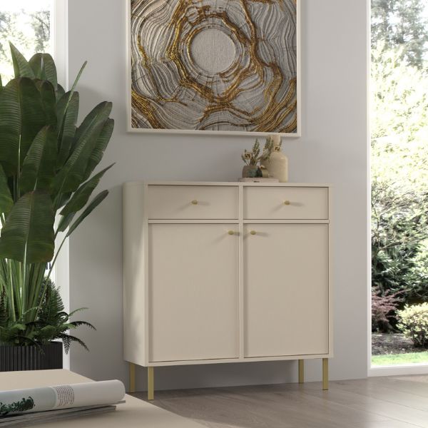 Komoda Tokyo 2 2F2S w eleganckim kolorze pisakowego beżu doskonale wpisuje się w nowoczesne wnętrza inspirowane stylem japandi.