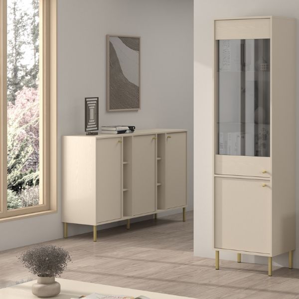 Komoda Tokyo 2 w eleganckim kolorze piaskowego beżu zachwyca prostotą formy, subtelnym designem i funkcjonalnością, która sprawdzi się zarówno w salonie, jadalni, jak i sypialni.