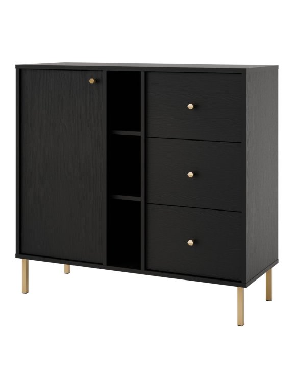 Komoda Tokyo 2 1F3S w eleganckim czarnym kolorze wnosi do wnętrza spokój, równowagę i subtelną elegancję.