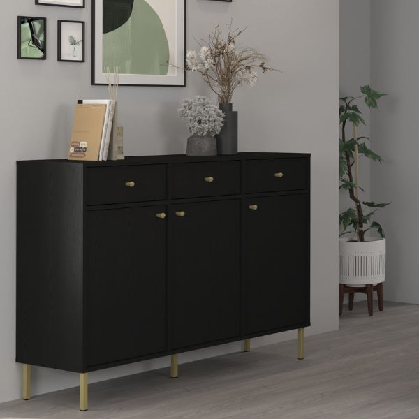 Zaprojektowana z myślą o maksymalnej funkcjonalności, zawiera trzy szuflady umieszczone u góry oraz trzy zamykane szafki z półkami - duża przestrzeń do przechowywania okryć, dokumentów, tekstyliów lub dekoracji.