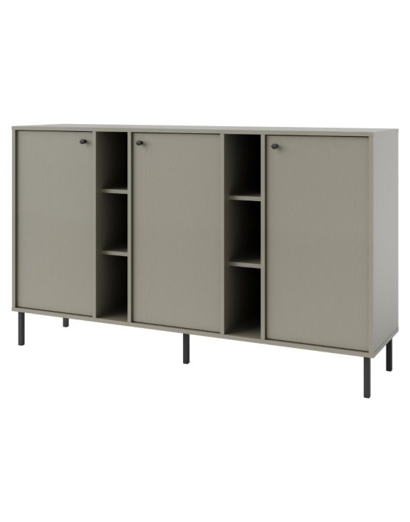Dzięki trzem pojemnym sekcjom i licznym półkom, komoda oferuje mnóstwo miejsca do przechowywania.