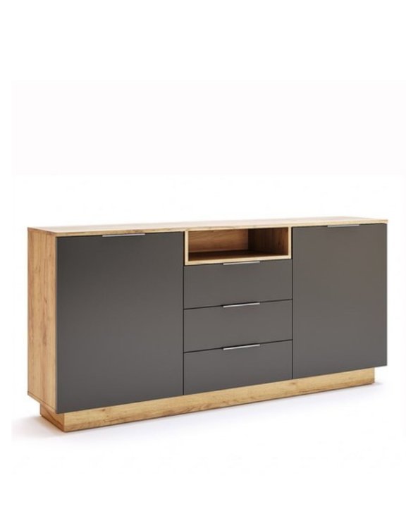 Komoda cechuje się dużą pojemnością - 3 szuflady, 2 zamykane szafki oraz otwarta półka, dzięki czemu pomieszczą się wszystkie ubrania, dokumenty i inne akcesoria.