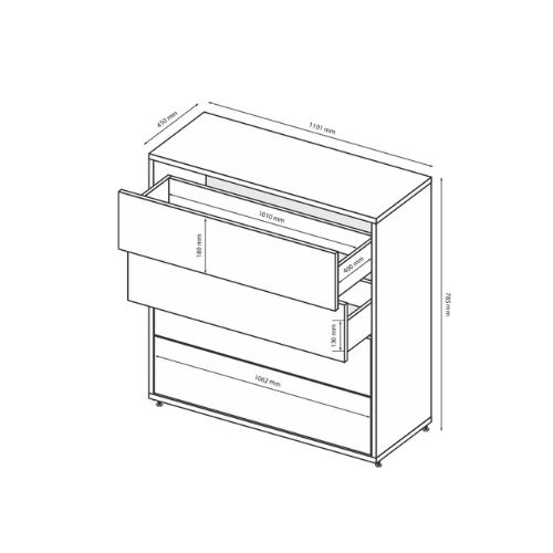 Cztery pojemne szuflady pozwolą na komfortowe przechowywanie odzieży czy innych drobiazgów.