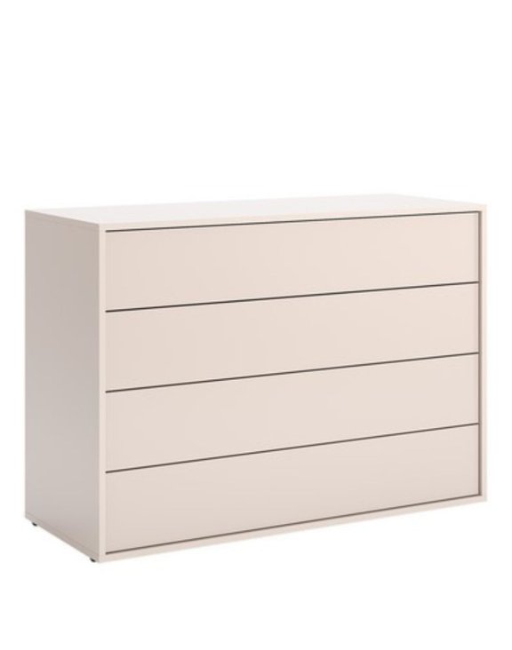 Gładkie fronty i subtelny kaszmirowy kolor sprawiają, że komoda pasuję do wnętrz nowoczesnych i klasycznych.