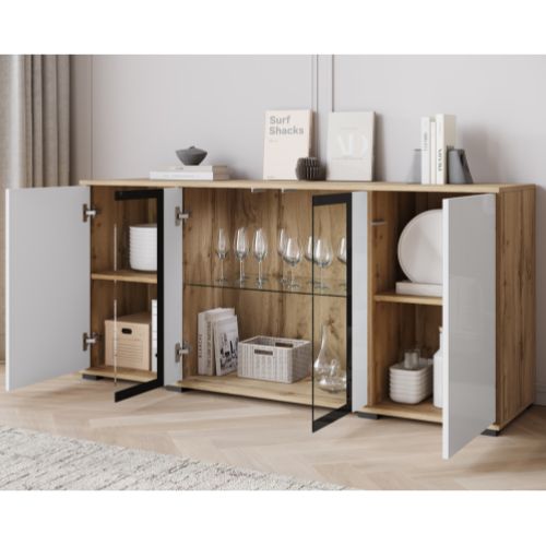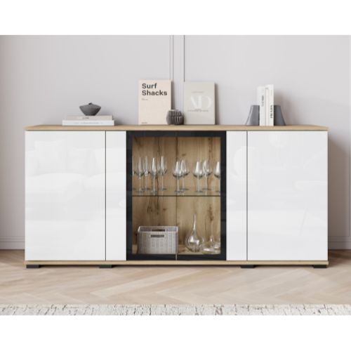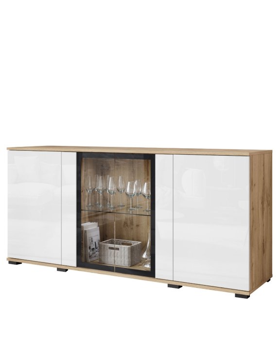 | Komoda z witryną LED Caro dąb wotan/biały połysk (CARS154W0) | 925 zł |