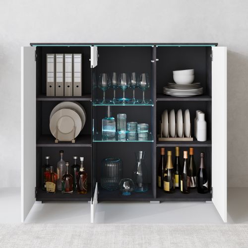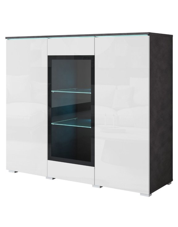 To mebel, który przyciąga wzrok zarówno w dzień, jak i po zmroku — dzięki delikatnemu oświetleniu LED (opcjonalnie) eksponującemu zawartość przeszklonej części, staje się stylowym punktem centralnym każdego salonu czy jadalni.