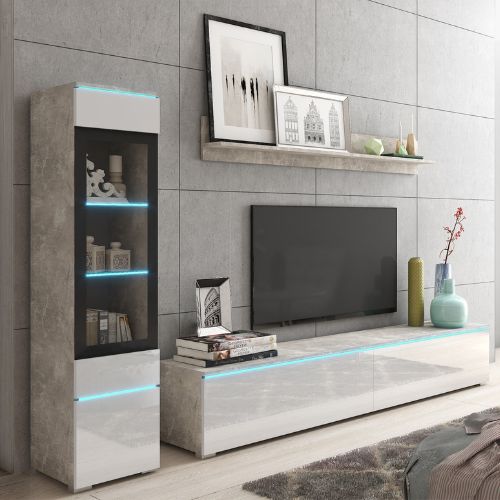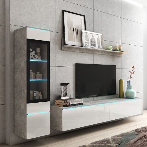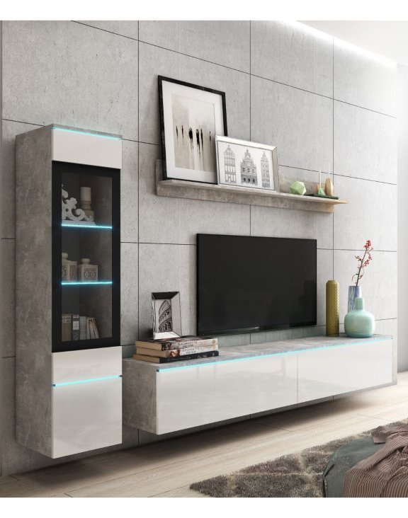 | Komplet mebli do salonu LED Vera I beton/biały połysk (VRBAW01) | 1039 zł |