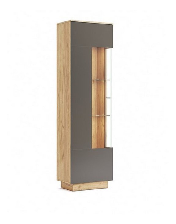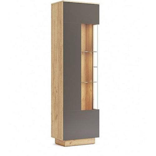 Przestronne wnętrze z półkami podświetlanymi LED pozwoli na wyeksponowanie książek, dekoracji czy zastawy stołowej.