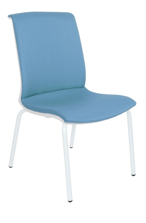 Krzesło konferencyjne z rodziny LEVEL tym razem na stacjonarnej podstawie 4L - cztery metalowe nóżki malowane proszkowo na kolor biały lub w wersji chromowanej błyszczącej.